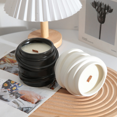 Venta al por mayor tarro de cerámica personalizado mecha de madera aceites esenciales naturales vela de soja perfumada vela aromática