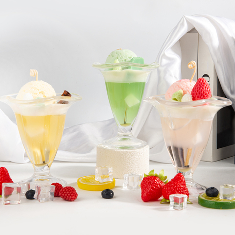 Nuevo tarro de copa de cristal colorido fresa fruta helado comida pastel vela regalo conjunto cereales velas de soja